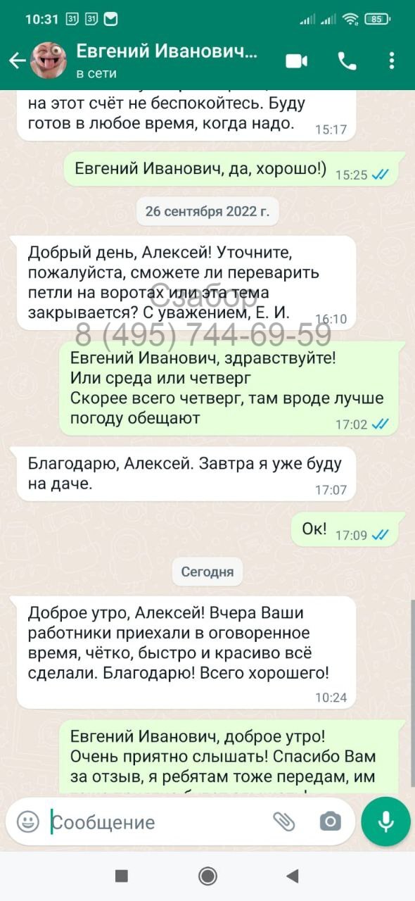 Ноль проблем при эксплуатации калиток. Всегда оперативно подъедем и поможем с любым вопросом даже после истечения гарантийного срока.