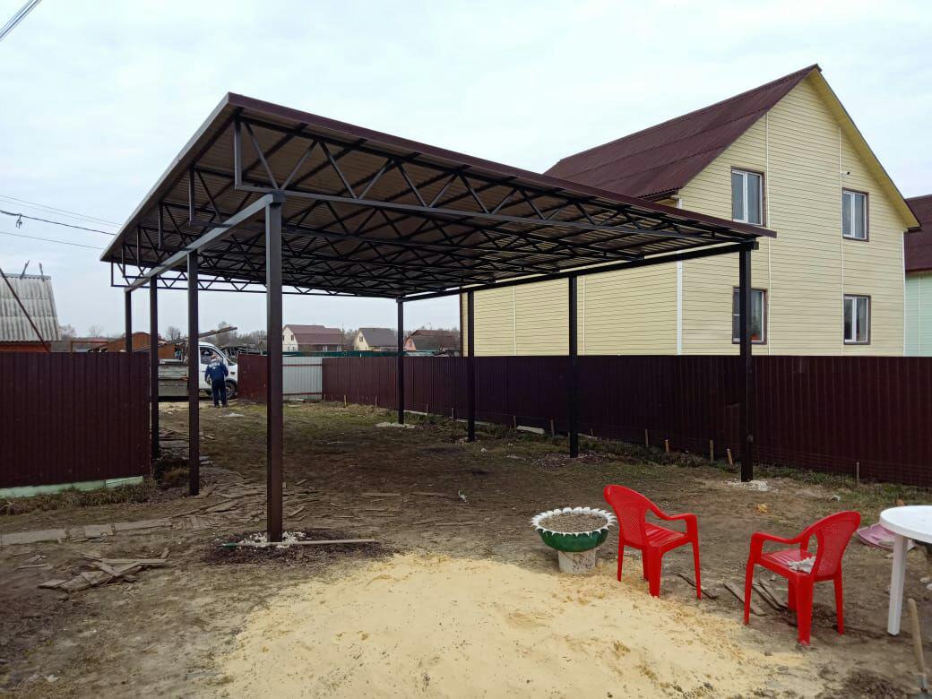 Мы специализируемся на установке красивых и качественных навесов из металлочерепицы.